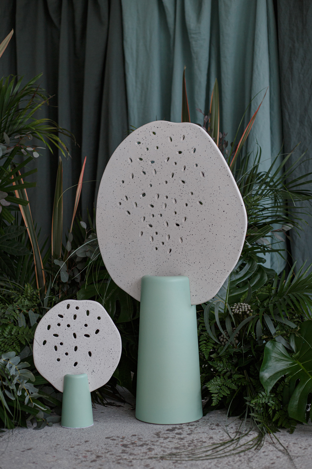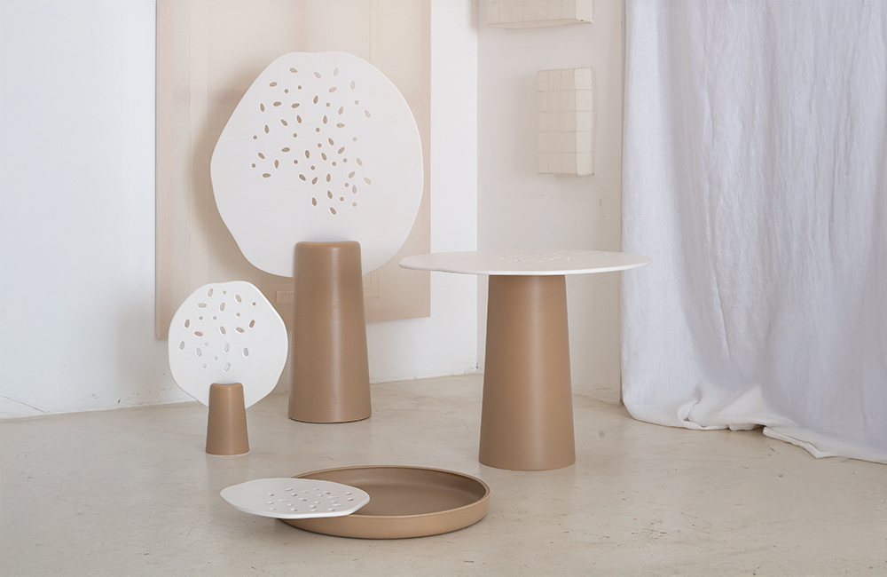 Dans la continuité de notre exploration des tensions formelles, cette collection repose sur une recherche de dualité entre masse et fragilité. Nous avons ainsi associé des pièces fonctionnelles pleines à des éléments réalisés en dentelle de faïence, exploitant les potentialités techniques de la matière pour générer un contraste sensoriel et visuel.