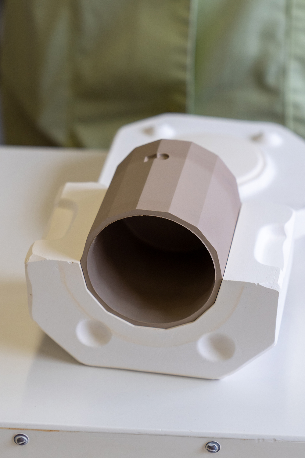 En mobilisant notre connaissance des processus de transformation de la matière, nous avons imaginé un objet en deux parties, alliant rythme formel et dimension sculpturale, destiné à accueillir une bougie ou un diffuseur de parfum.
