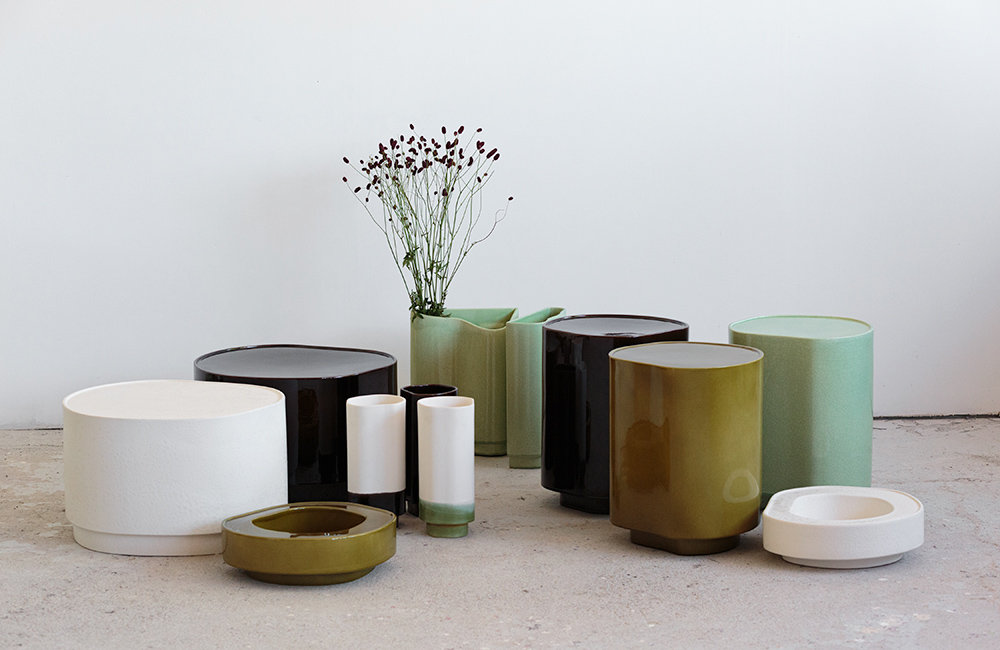 Les objets qui en découlent — tables basses, vases, lampes à poser — traduisent cette intention à travers des formes épurées et organiques, pensées pour dialoguer avec la matérialité brute et les processus de fabrication artisanaux. Chaque pièce incarne une hybridation entre maîtrise technique et expressivité formelle, contribuant ainsi à renouveler les langages contemporains du design céramique.