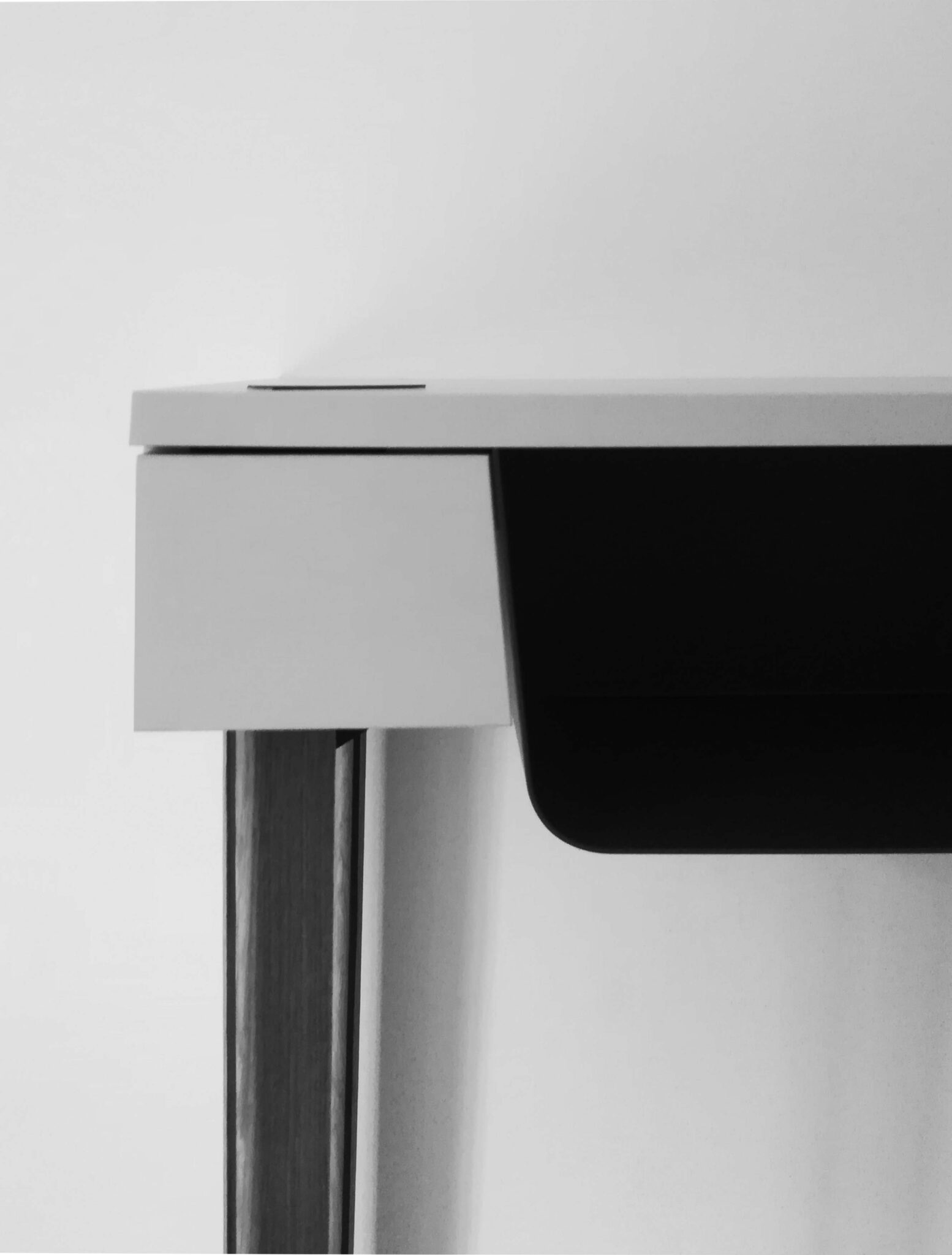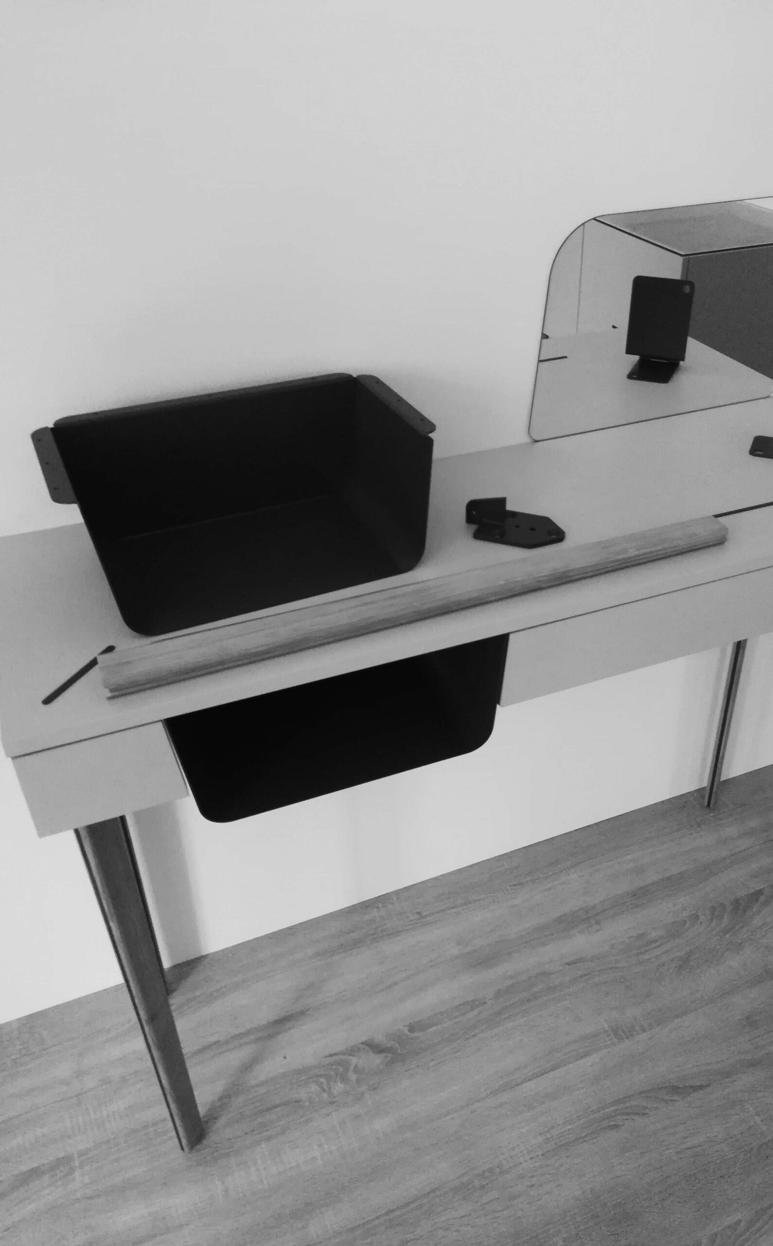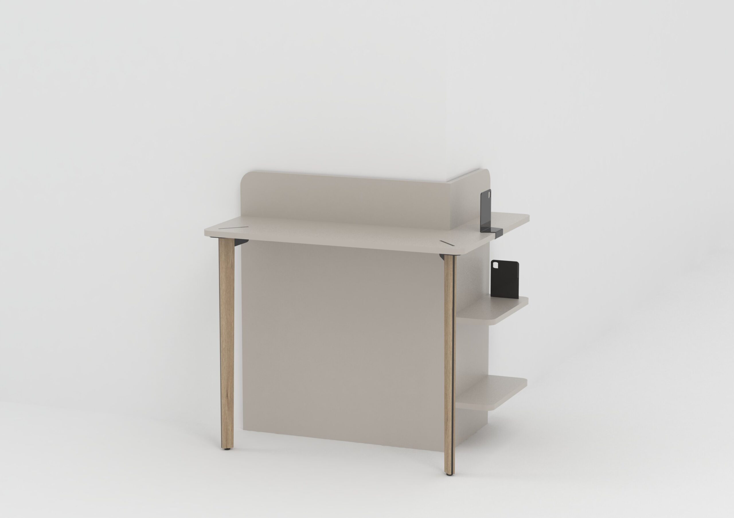 Ces composants ont permis la stabilisation de plusieurs typologies de mobilier, à savoir : une console/secrétaire, un meuble d’angle, une petite commode vitrine et une table basse. Chacun de ces éléments intègre des caractéristiques formelles distinctives, conçues pour devenir des marqueurs identitaires de la marque QUADRO, destinés à enrichir l’expérience de personnalisation en showroom.