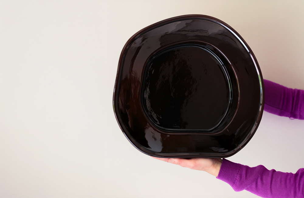Sa fonction contenante est assurée à la fois par un corps creux structuré et par un rebord généreux, qui accentue la préhension et l’usage tout en affirmant une présence sculpturale.