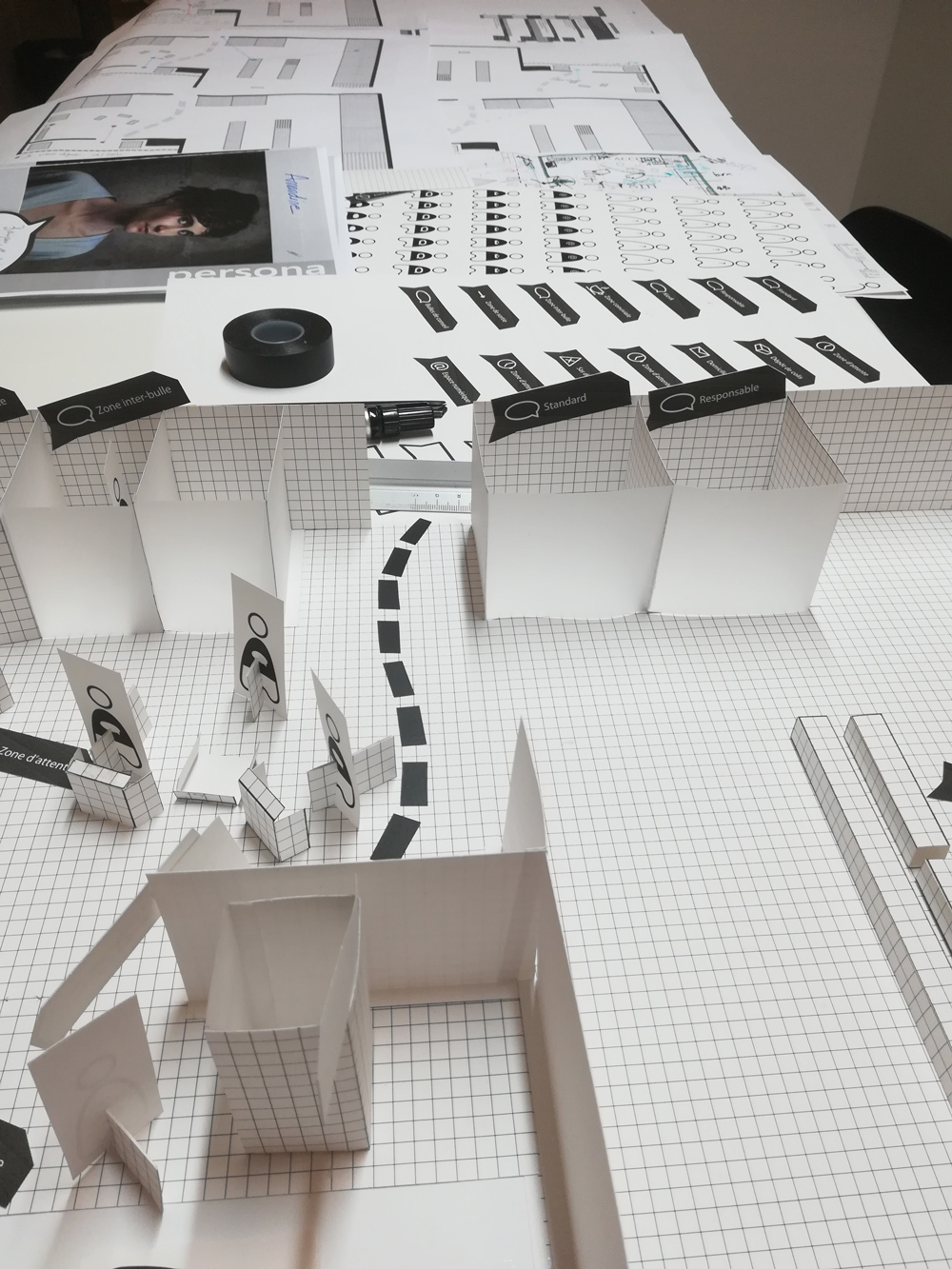 À l’issue de cette phase exploratoire, nous avons orchestré un prototypage grandeur nature des situations d’accueil et de la configuration spatiale associée. Cette expérimentation a permis de tester en conditions réelles les hypothèses d’aménagement et d’interaction formulées en amont.