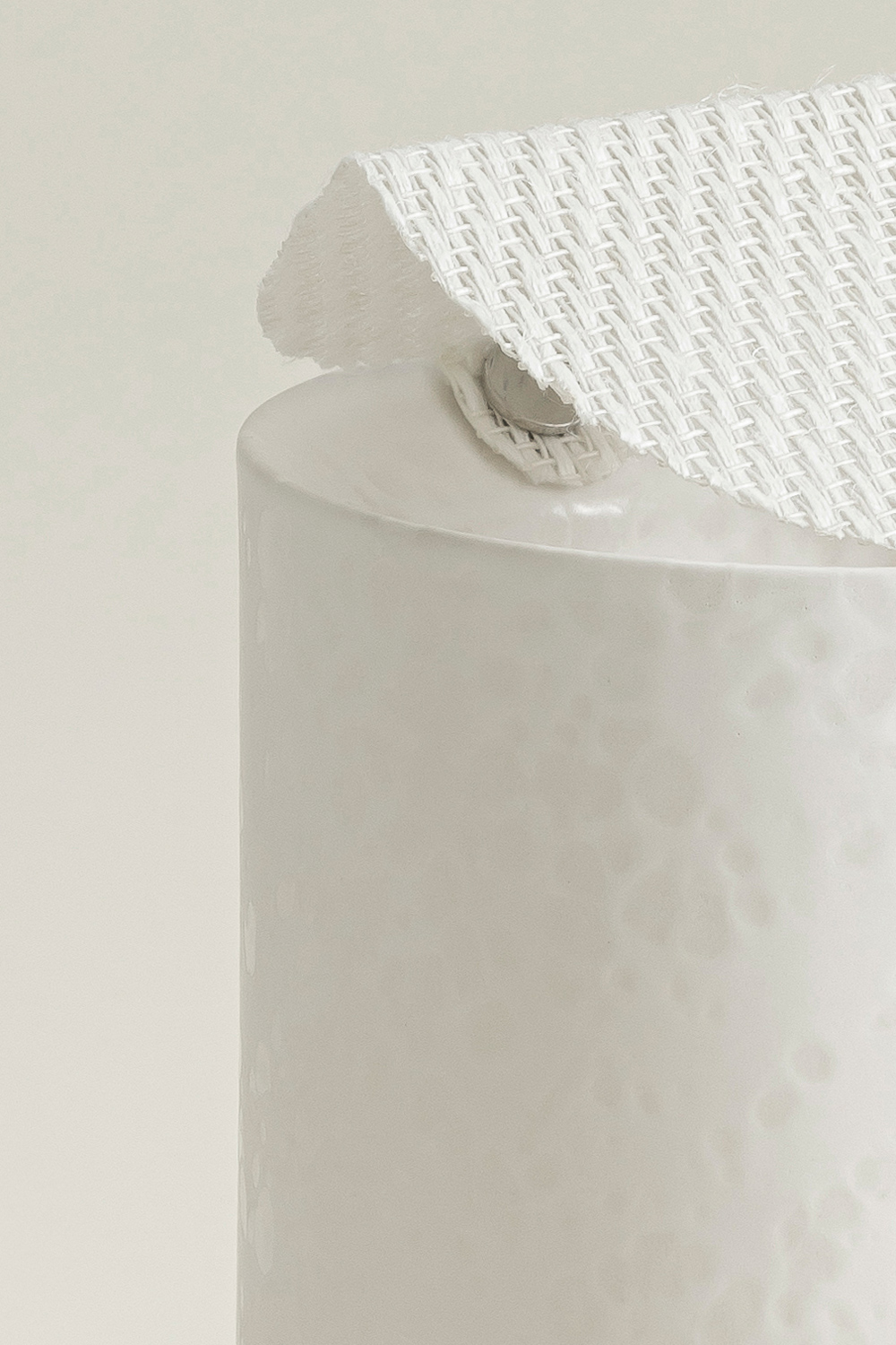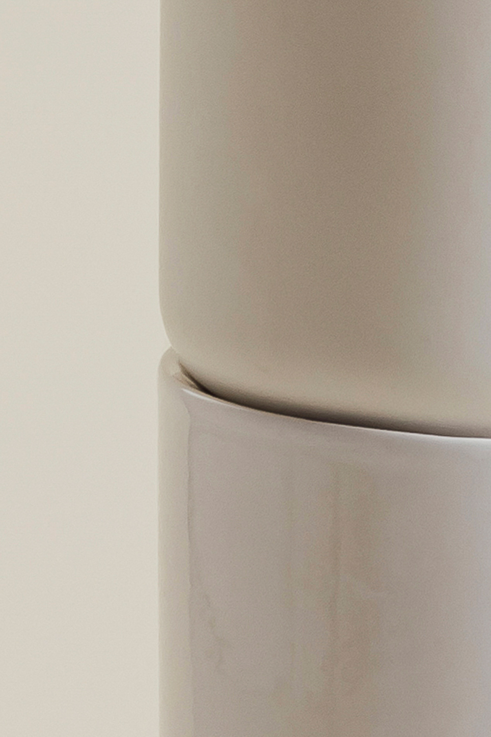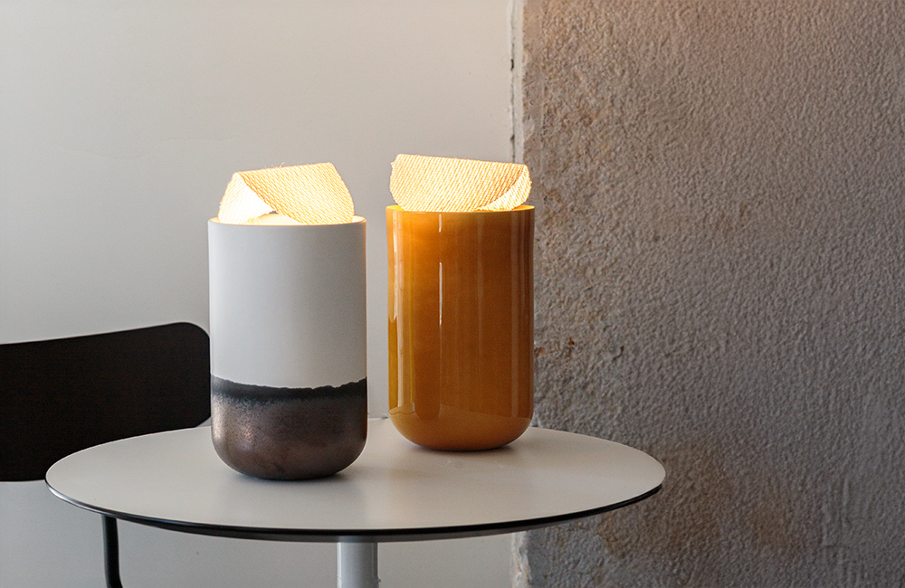 Le design du luminaire CY repose sur une recherche d’équilibre visuel et tactile entre rigidité céramique et flexibilité textile. Cette dualité matière crée une tension formelle maîtrisée, soulignant la finesse de l’assemblage entre les composants.