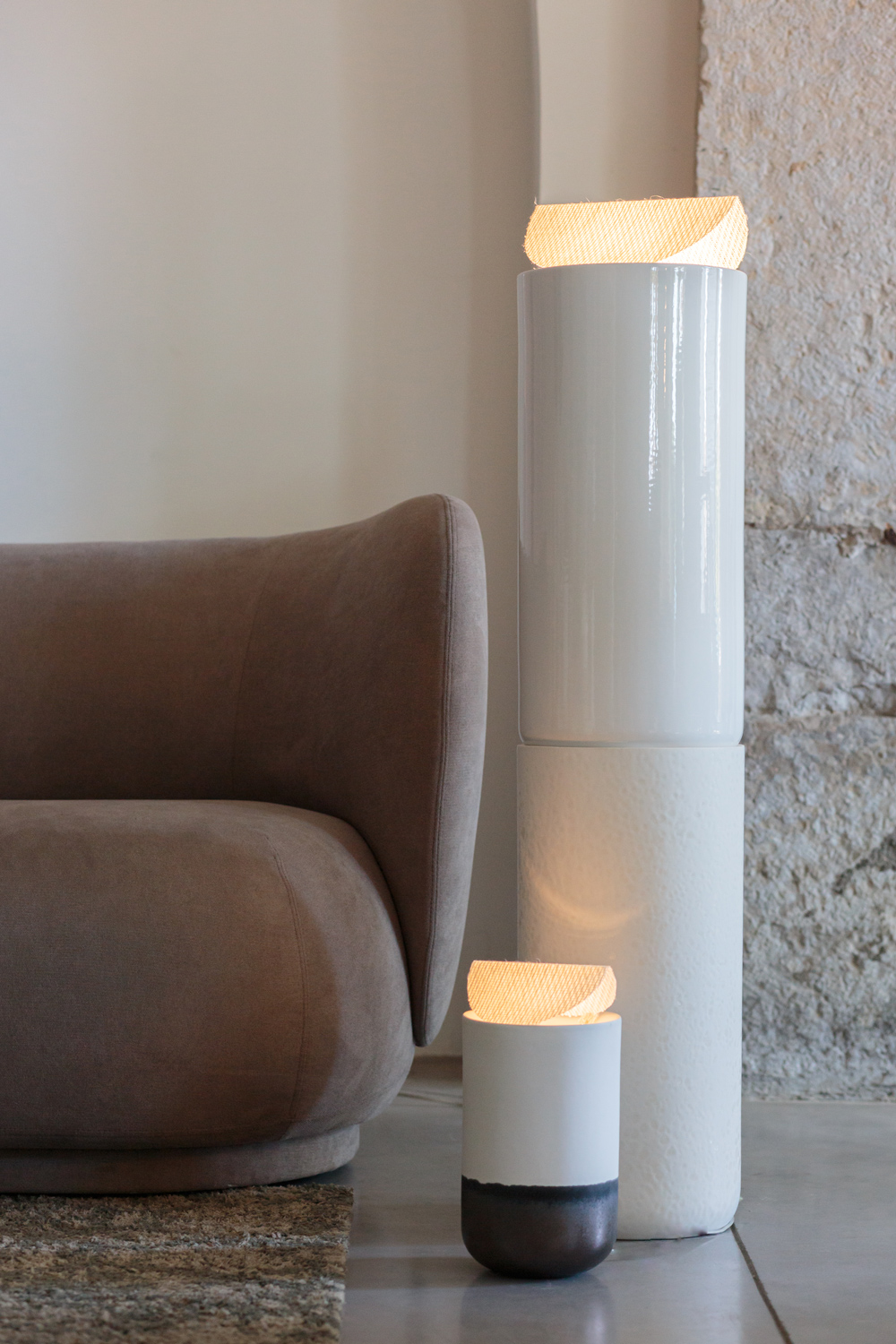 Le projet CY, décliné en petit et grand modèle, explore de nouvelles potentialités d’association entre tradition céramique et matériaux composites innovants. Ces luminaires repoussent les frontières conventionnelles de la faïence en conjuguant le savoir-faire artisanal de la Faïencerie de Charolles avec l’usage du Varian®, un textile de lin thermoformé mis au point par l’entreprise française Culture’in.