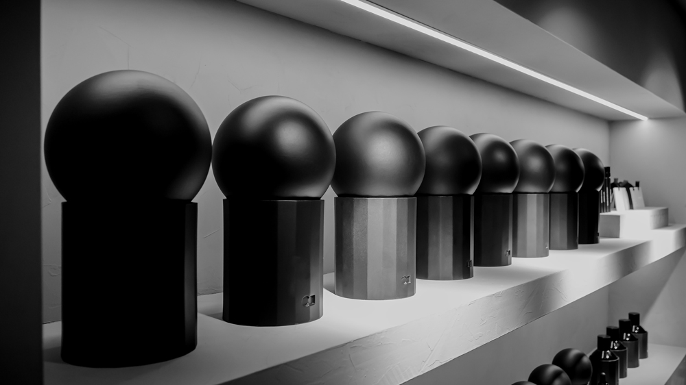 Dans un processus de co-construction étroite avec le fondateur, nous avons conçu un écrin architectural et minéral, pensé comme une mise en scène raffinée des contenants olfactifs développés en porcelaine. Le dispositif vise à valoriser la double dimension sensorielle et sculpturale des objets — les sphères-parfums — en les positionnant comme vecteurs d’expérience plutôt que simples produits.