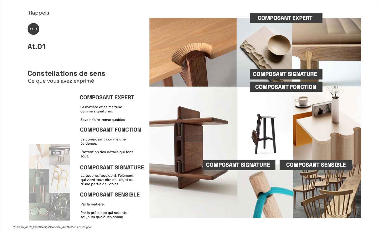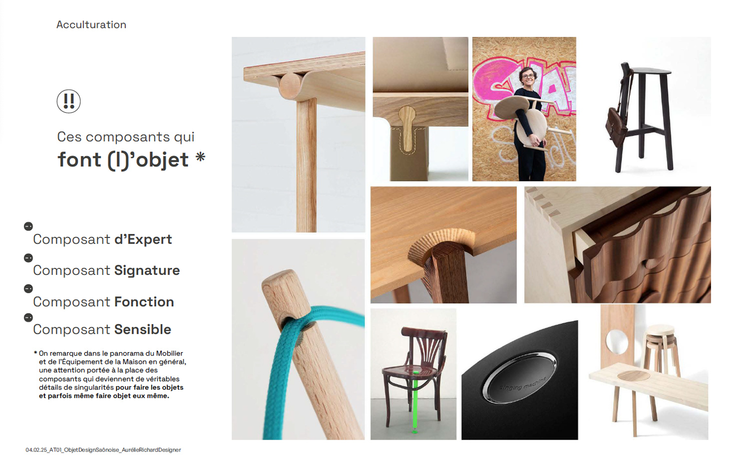 Cette démarche a donné lieu à un travail de spécification collaborative, conduit à travers une série d’ateliers de co-construction réunissant un comité de projet interne. Ces sessions ont permis de faire émerger une cartographie des composants-signature du mobilier Saônoise, identifiés comme porteurs d’une identité technique, culturelle et sensible. À partir de ces éléments, nous avons construit un récit de l’“objet-composant Saônoise”, à la fois outil stratégique de communication et support de médiation.
